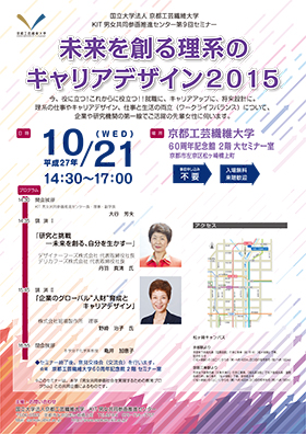 10月21日(水)開催 KIT男女共同参画推進センター第9回セミナーのご案内 「未来を創る理系のキャリアデザイン2015」