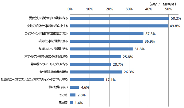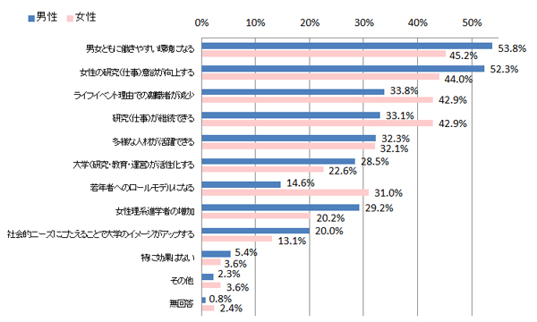 本学で男女共同参画を推進することにはどのような効果があると思いますか。