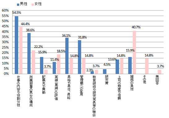 本学での業務上(職務上)での男女差を感じたことはありますか。