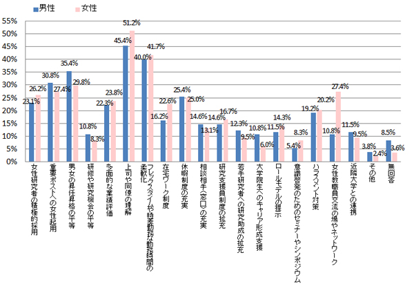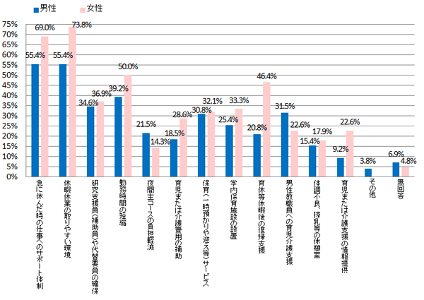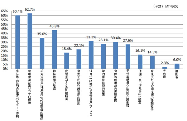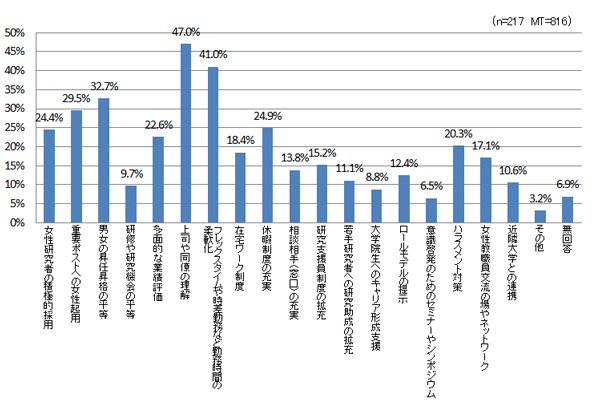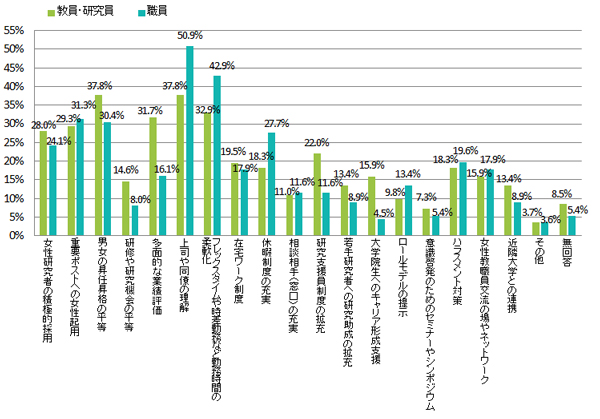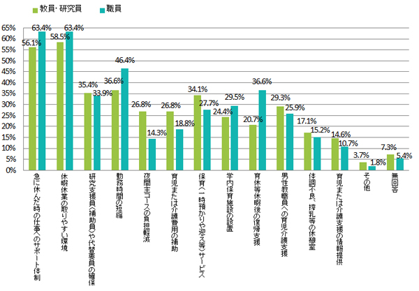 本学において男女共同参画推進のために、どのような対策や支援制度が必要だと思いますか。(複数回答可)