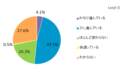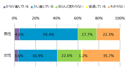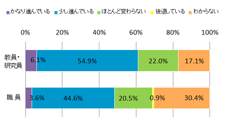本学の男女共同参画の進展度についてどう思いますか。